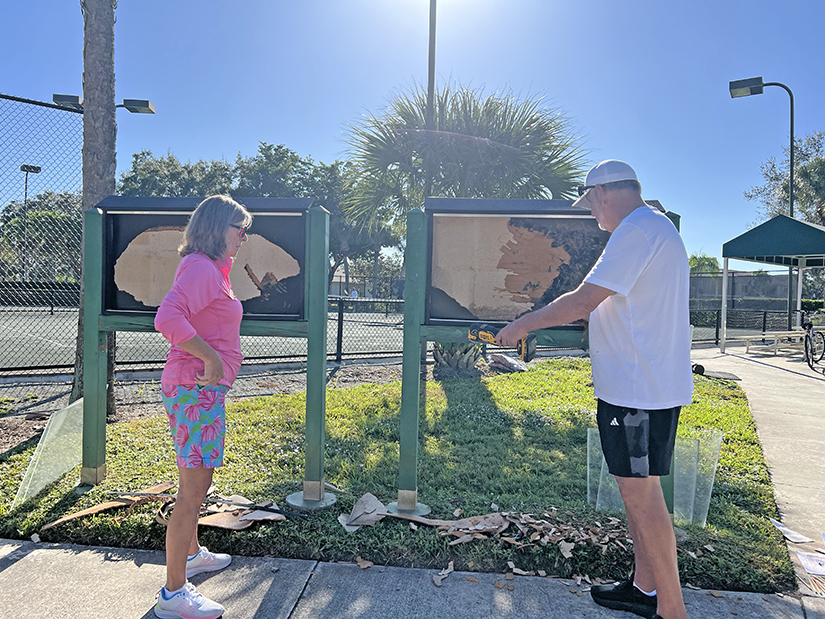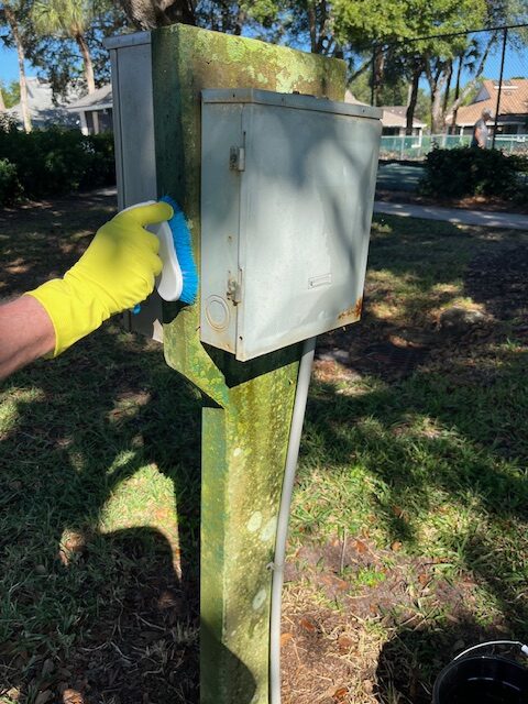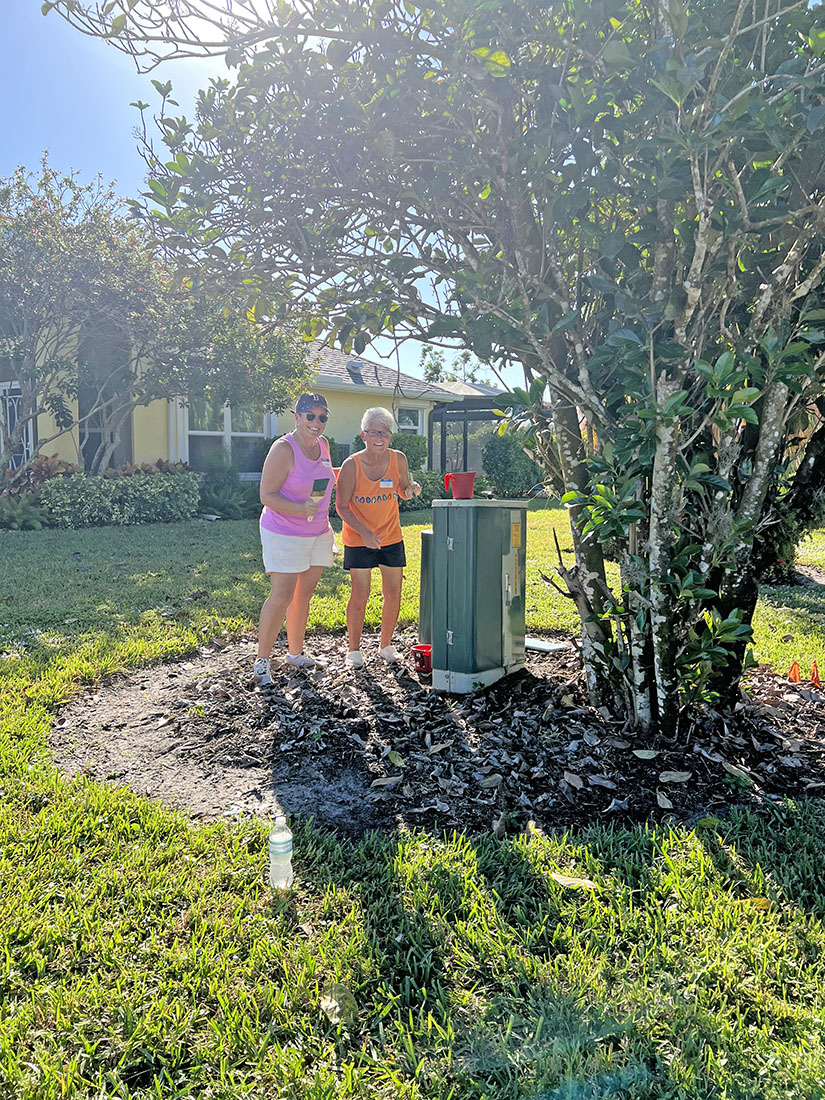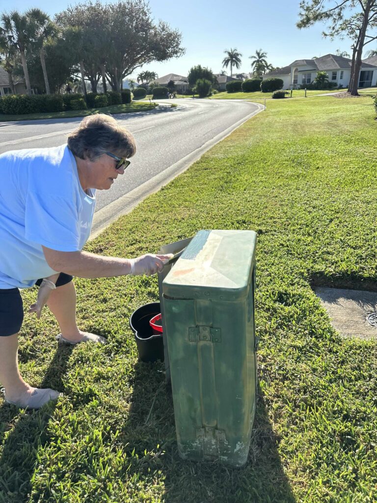 Friends and neighbors completed a variety of tasks including power-washing, collecting trash, painting utility boxes, refreshing bulletin boards, and clearing debris and weeds around the community. The bulk of the work occurred on and around Country Creek Drive. And one only must enter the main gate off Corkscrew to witness the improvements. Mounds of overgrowth and debris were removed from the front entrance and the staging area. The Deadheaders and Volunteers led these efforts. Additionally, bags of trash were collected, and utility boxes and bulletin boards received a fresh coat of paint.