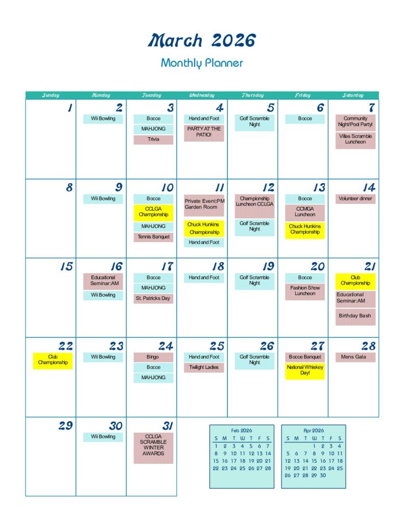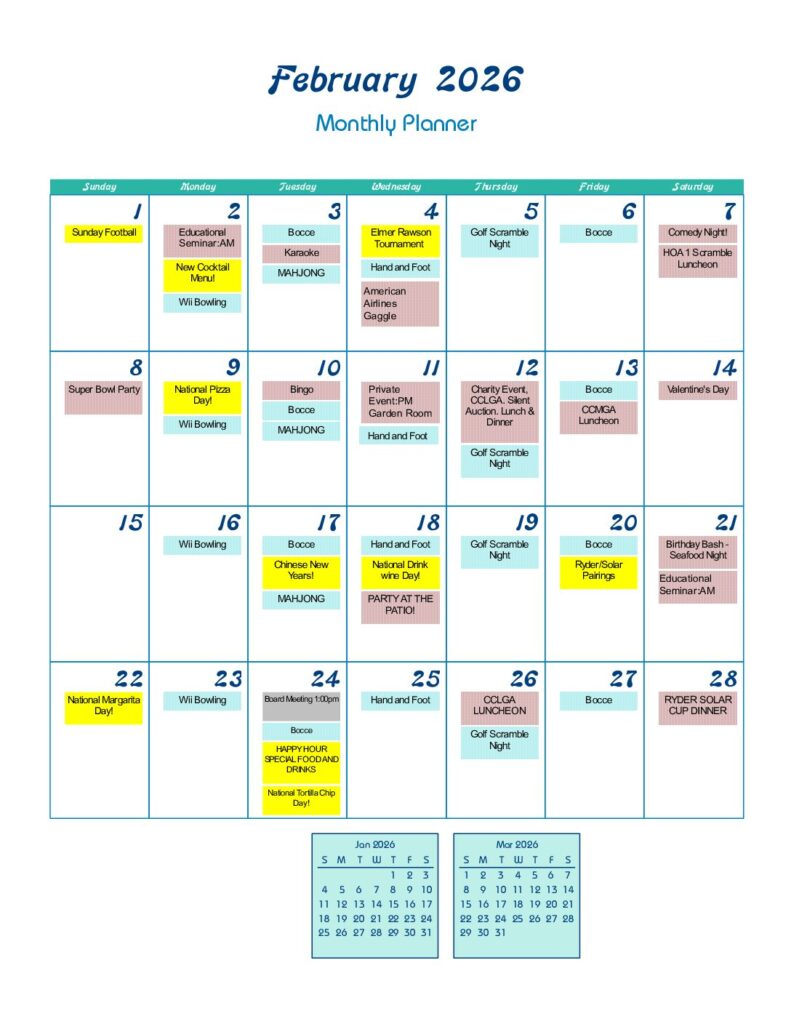 Attached is the Events Calendar for the months of February and March. Please note these dates are subject to change.