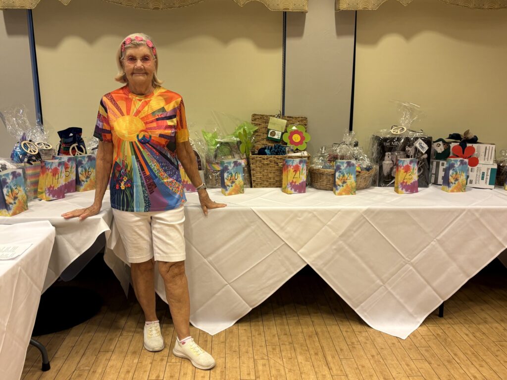 Lynn Fox and her committee obtained gift donations and arranged the goodies in 50 baskets.
