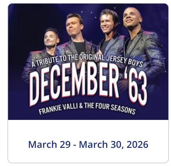 March 29-30, 2026 The music of Frankie Valli and The Four Seasons comes to life...